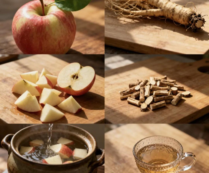 食材准备:苹果1个(优选红富士,果香浓郁)、黄芪5-10克(根据体质调整,气虚明显者可加至10克)。